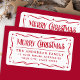 Röda och vita returetiketter eller andra färg- med texten "God jul" i ett festivt teckensnitt och din returadress nedan omgiven av en gräns med stjärnor. Du kan ändra bakgrund, gräns och teckensnitt färger till vilken anpassningsbar som helst färg med hjälp av anpassningsfunktionen verktyg.