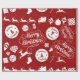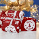 Festive Helgdag förpackar pappra presentband med ett kollage av renar, prydnadsföremål, gåvor, presenter, Julgranar, lager och ett uttryck för God jul, Glad helg och säsongshälsningar. Röd och vit