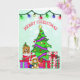 Hand plockade med vita julkort med Julgran, julklapp, ljus med valp och kattunge och massor av gåvor under träd. En söt renare på baksidan.