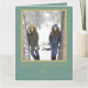 Elegant green golden hand written script font Merry Christmas and Happy New Year photo card.