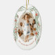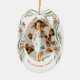Give yourself, parents, or grandparents a sweet, personal, keepsake gift ornament featuring a family photo among sweet, hand-drawn illustrations of chic green ribbon and festive sprigs of red poinsettia flowers and greenery. Traditional fonts keep the vibe high end and traditional making this Christmas tree ornament an excellent choice for sentimental gifting and the lover of grand millennial design.
