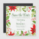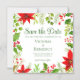 Den här festliga grönten Jul Rädda den magnetiska inbjudan Datumet innehåller ljusa blommor av redpoinsettia vid högerna av inbjudan, och hullbär och grönska på den översta lämnat. En vacker botanisk inbjudningsmagnet för ett helgdag bröllop.