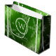 Lägg till en festlig beröring till årsslutet och julhelgen i firande med den här presentpåsen för elegant, som innehåller snöflingor som faller på en faux metallisk grönt foil/armé/mire-bakgrund. Lägg till inledande text/monogram (eller logotyp), namn, årstext eller anpassningsbar efter behov. För bästa resultat med presentsäcksdesignen snöflingor vin i den festive Red foil finns du på följande länk: zazzle.com/festive_green_foil_snowflakes_monogram_name_wine_gift_bag-256875310482147111 Design © W.H. Sim. Se mer på zazzle.com/expressionsoccasions