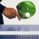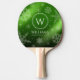 Lägg till en festlig beröring till årsslutet och julhelgen i firande med den här elegant bord tennis-paddeln, som har snöflingor som faller på en faux metallisk grönt foil/mbre/mire-bakgrund. Lägg till inledande text/monogram (eller logotyp), namn, årstext eller anpassningsbar efter behov. Design © W.H. Sim. Se mer på zazzle.com/expressionsoccasions