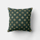Det här festive dekorativ kudde har guld Celtic shamrock mönster på mörk grönt grund. Perfekt för att lägga till en liten irländare till din hemdekanter.
