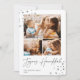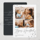 En reflektor möter den moderna Hanukkah-fotokortsdesignen med tre av dina favoritfoton (ett liggande/vågrät och två kvadratiska) på en skarp vit bakgrund som accentueras med hand plockade-stjärnor i hörnen. "Joyous Hanukkah" visas under handskrivet skript. Anpassa med din familj namn och året.