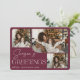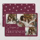 Vår helgdag- och visitkortsdesign är det perfekt sättet att visa tre av dina favoritfoton i familjen. Vågrät- eller landskapsinriktad design med "Season's Greetings" i vit typografi och handskript, med din familj namn under på burgundbakgrund.