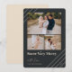 En reflektor har en modern helgdag-kortdesign som innehåller tre av dina favoritfoton (ett landskap/vågrät och två kvadrater) på en rik, svart bakgrund som accentueras med krämdiagonalt rand i färgaden i hörnen. "Snö Väldigt Merry" visas under texten i stil. Anpassa med din familj namn och året.