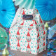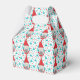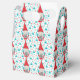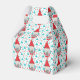Toppen roligt och söt för julhelgen. Den här konstruktionen har en roligt gnom med grått-hår i två braider som är bundna med rött rosett band, i en hög röd hatt mot bakgrund av Julgranar i skuggor av turkos och rött christmas bollar.