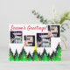 Säsonhälsningar ljust grönt fir träd med dekorationer för glitter. Röd text "Season's Hälsning" kan vara personlig, liksom de fyra fotona och din familj namn. Roligt söt crisp sparkly Julhälsningar kort
