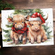 Tittar för säsongens bästa julkort! Vår Highland Cow duo med två kalvar i helgdag är säker på att ge ett leende till era kära ansikte. Konstruktionen är positiv med kalvarna som bär en jultomat och en planerad vinterscarf, omgiven av träd och en mysigt vinterbakgrund med vattenfärg. Budskapet "God jul till Moo!" är färdigt. Dessa kort är perfekter för älskare, land-entusiaster, och alla som uppskattar den skotska och westerna charmen från ett hem eller en bondgård. Utformningen är enkel men charmerande, och skapar den som ett trevligt tillägg till alla semesterhälsningar. Dessa kort, som tryckts på högkvalitativ papper, är ett underbart sätt att sprida glädje och uppskattning över helgdag som gör våra liv bättre. Beställ din tid i dag och gör julen i extra speciell för dina kära! COPYRIGHT © 2020 Judy Burrows, Black Hund Art - Med alla Höger reserverade. Mysigt höglandskort för Boskap God jul Helgdag