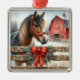 Festive Horse and Red Rustic Barn jul Julgransprydnad Metall