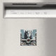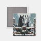Söt julmagnet med grafik på en vit häst och en svart häst som står på en trägatt som dekoreras i helgdag och söt twinkling jul ljus som är täckt i snö. Hästarna görs i en tecknad tecknad, bok popart stil för att väcka en nostalgisk känsla.