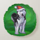 Festive Husky i Santa Hat på Grönt Rund Kudde