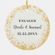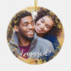 Förvandla förlovningen till ett sött minne med den här festliga prydnaden som har ett gräns med belyst snöflingor. Ett foto av det förlovade paret täcker hela bakgrunden. Ord "Engaged" lägger till en roligt och mysigt beröring till designen. I baksidan finns par namn och förlovningen. Den här prydnaden gör en personlig perfekt till Julgran och ditt hem. Det är också en underbar djurhållare för föräldrar, mor- och farföräldrar och syskon.