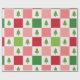 Mönster har en schackbräda med röda rutor, gröntar och rosa, med liten grönt Julgranar som är spridd över hela världen. Perfekt för att lägga till en festlig beröring till dina helgdag.