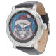 This cheerful holiday illustration features an adorable cat with white fur, red glasses, and a playful Santa hat. Surrounded by vibrant winter decor on a blue background, the design combines handcrafted charm with seasonal fun. Perfect for Christmas artwork, greeting cards, or festive decor that brings joy to any setting.