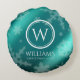 Festive Light Blue Foil Snöflingor Monogram Namn Rund Kudde