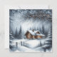 Personligens julkort. Kute loggstuga på backe med snöskog.