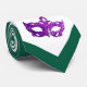 Två mycket elegant masker i violett/lila damm med en mousserande orange av gult är dekorerat denna subtila elegant Mardi Gras tie. Vit och grönt bakgrund med gyllene och lila-konfekter, för att vara den bästa eleganten för Mardi Gras Party!