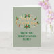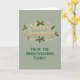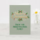 Festive Holly design with the message Merry Christmas in gold print Christmas card. Change family name and message inside accordingly.