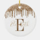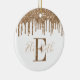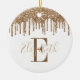 Festive Monogram Guld Glitter Drip Ceramic Ornament