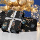 Festive Nutcracker Santa Shooting Star Wrapping Paper Black modern background