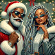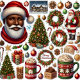 Tomten och en följeslagare är redo att fira, båda med snyggt julteman. De står mot bakgrund av helgdag och dekorationer, redot för en festlig sammankomst.