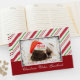 En julgäst i Önskemål bok med ett foto av en söt pug-valp som sover medan han bar en röd tomhatt. God jul är skrivet på hattens band i ett handskrivet trendig. Ett svart, grymt gräns med färglöst helgdag omger ram på detta beundransvärda foto. Bakgrunden är ett mönster som utplånats av candy cane i rött vitt och grönt. I anpassadets text vid grund står det: Peace Joy och Pugs.