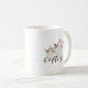 Anpassningsbar-designad festivt kaffe mugg med "hej fall"-manuell kalligrafi med vattenfärgsvit pumpa och löv-design.