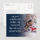 Festive Quote Photo Overlay Navy Blue Whimsical text in Navy är till lämnat och delvis överlagd ovanpå bild till högerna, som ligger bakom ett graderat tonat lagrar som tonar mot mitten. Enkel att anpassa med ditt namn och med hälsning och returadress och meddelande på baksidan.