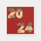Gott nytt år 2024 Typografi Faux guldgolfstext på den synliga röda bakgrunden, Modern Lettering Chic Nyårsafton Party Napkins