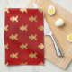 Festive Red and Gold Foil Winter Pepparkaksgubbe Kökshandduk
