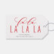 Elegant typografi "fa la la la la" festive red, helgdag presents märkres. Utformningsfunktioner, två linjer för malltext framför märkre och fet mönster-stöd för rött bär.