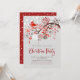 Festive Red Bird and Flowers jul Party Inbjudningar