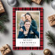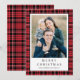 Festive Red Plaid Photo Christmas Holiday Card.