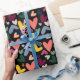 Cute Classic colorful I Kärlek You Valentine Day hjärta mönster på svart bakgrund. Vintage, funky, modern hipster-design för älskare från romantiska tonade Alla hjärtans teman. Roligt pappra lakan för att ha packat in roligtens överraskningsgåvor eller jag Kärlek You presenter med.