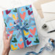 Cute Classic colorful I Kärlek You Valentine Day hjärta mönster på akvblåblå bakgrund. Vintage, funky, modern hipster-design för älskare från romantiska tonade Alla hjärtans teman. Roligt pappra lakan för att ha packat in roligtens överraskningsgåvor eller jag Kärlek You presenter med.