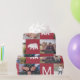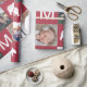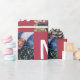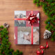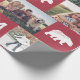 Vita vinterbjörnar med röd bakgrund, julklapp papper med fotokollage och monogram.. helgdag.