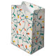 Den här roligtens återinspirerade presentväska har en julljusstråle i skuggor av kräm, ljusröd, laxens rosa, lätt teal, mörk teal och gult. Den koordinerar perfekt med andra objekt i samlingen... Det finns även märkre för pappra uppsättningar och presenter som du kan använda.