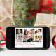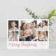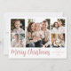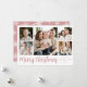 Modern helgdag-fotokort med fem favoritfoton som arrangerats i en samlingslayout. Din anpassningsbar hälsning finns i ett skript för elegant dammig ro med din familj namn och året som visas för högerna. Kortet återgår till visning vid ro rosa och vit snöflinga mönster.