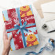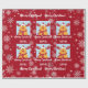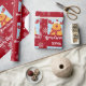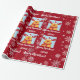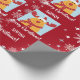 Festive, modern personalized Christmas gift wrap for kids, with Rudolph the Reindeer, the greeting "Merry Christmas" in stylish typography, and a personalized name. On a Xmas red background, with lots of cute snowflakes.
