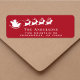 Roligt- och festive Red Return-adressetikett för julens julhelg med en vit silhuett av renar som flyger tomtens slift genom luft, och din familj namn och adress i enkel modern vit typografi.