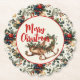 Festive Sleigh Ride – Holly Garland and Ornaments with Merry Christmas Greeting Paper Coaster