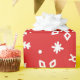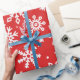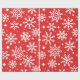 Den här bilden har en pulserande röd bakgrund som är försedd med en mängd vitt snöflingor i olika komplicerade utformningar. Snöflingor är jämnt fördelat över bakgrunden och skapar ett festligt och visuellt tilltalande mönster.