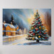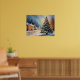 Fira helgdag med denna mysiga vinterkonst som har en snöstuga och ett glödande Julgran. Ett perfekt som tillägg till helgdag väggdekor.
