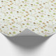En fin julomslutning papper, med en färgstark mönster av grönt och guld-folie som tittar punkter, stjärnor och text som läser Joy, som är inställd på en vit bakgrund.