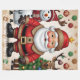 A festive design with a snowman, Santa, deer, and a decorated Christmas tree, set against a golden, dotted floral background, evoking warmth and holiday magic. "Original Image was generated by Meta AI. AI generated artwork. Licensed under CC BY-SA 4.0."