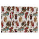 Färglöst helgdag mönster med skarp Victorian Santas med barn, leksaker och vinter-blommigtar på buff bakgrund med subtil antika musiknotation.