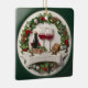 Festive Vin och Ornament High-Relief Illustration - en fängslande högupplösande illustration som fångar julstämningen. I hjärtat skapar ett par glasögon från elegant vin och flaska från rött vin med kork ett sofistikerat mittstycke. På den lämnat ger en charmig julprydnad av trä en aning helgdag. Den här komplicerade designen är perfekt för helgdagskort, inbjudningar och alla festliga projekt.